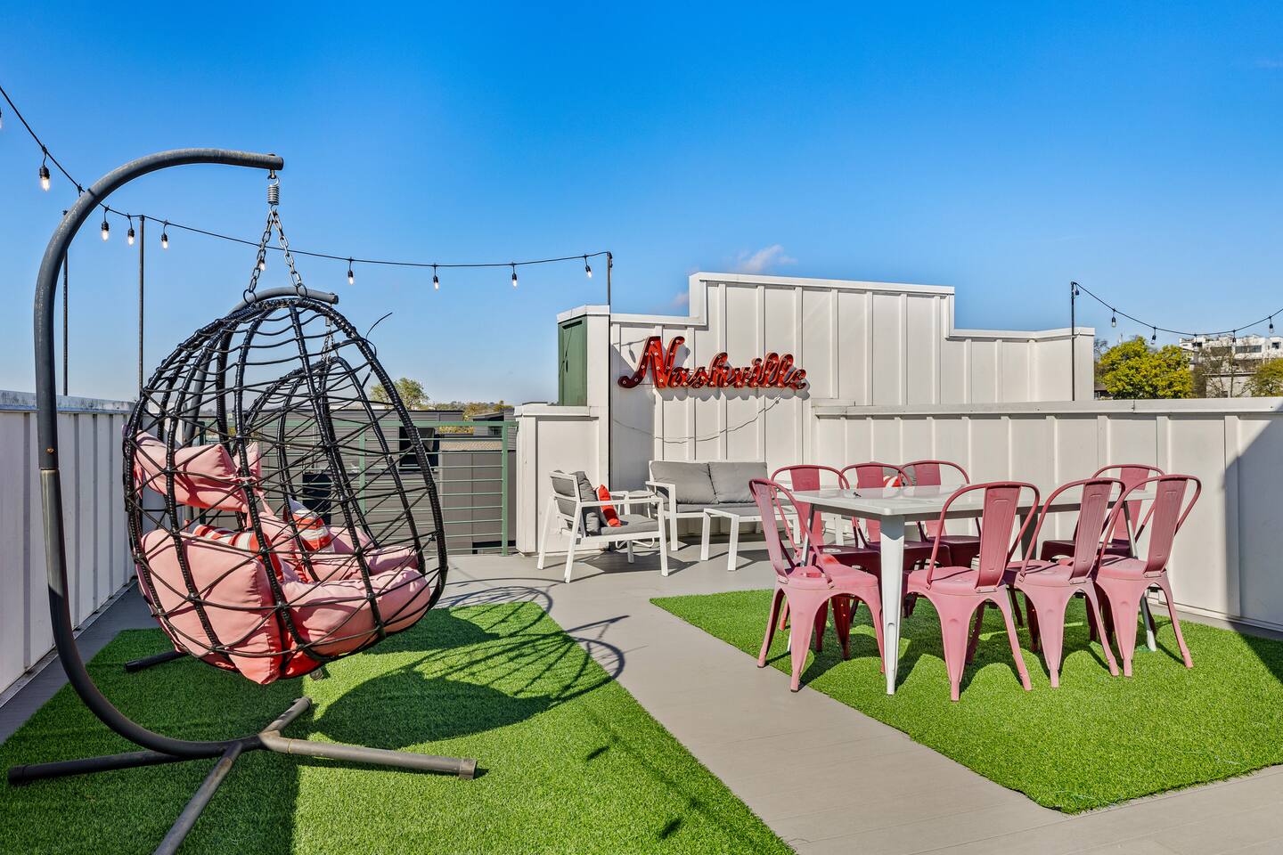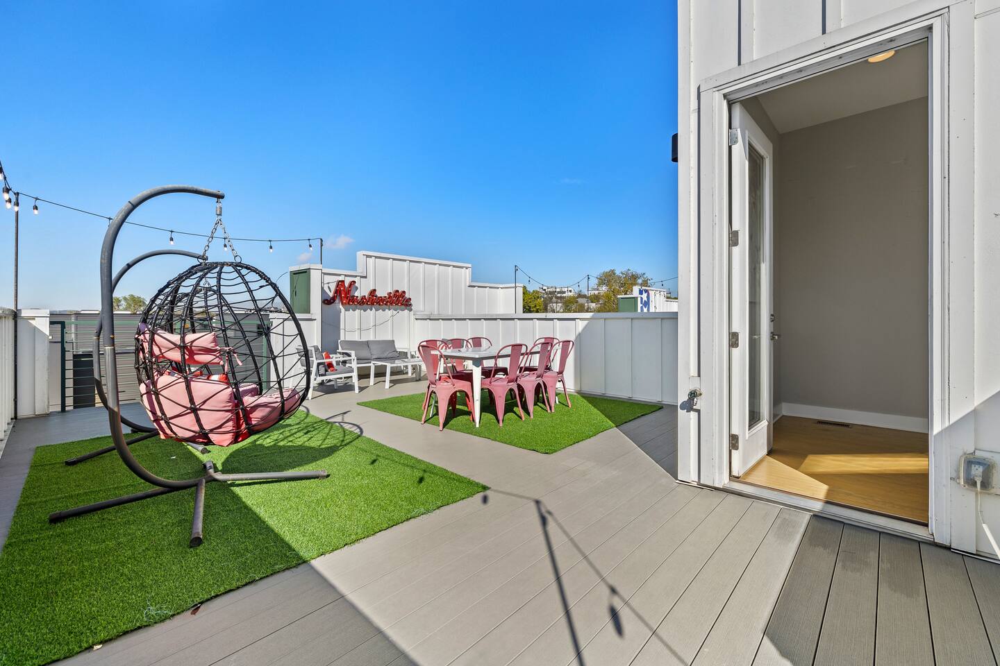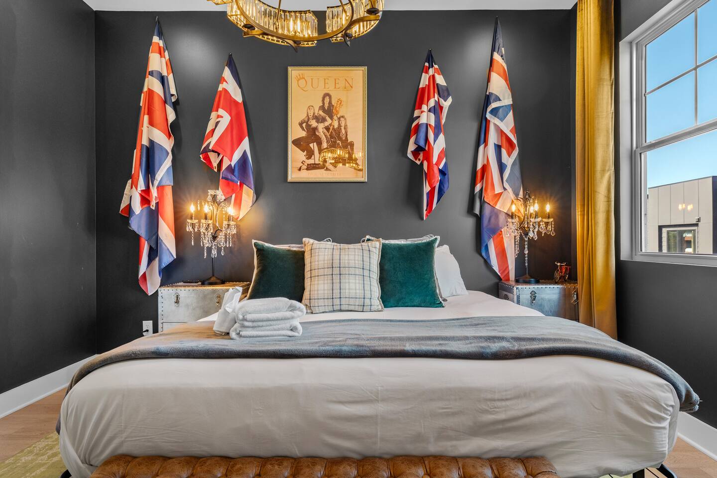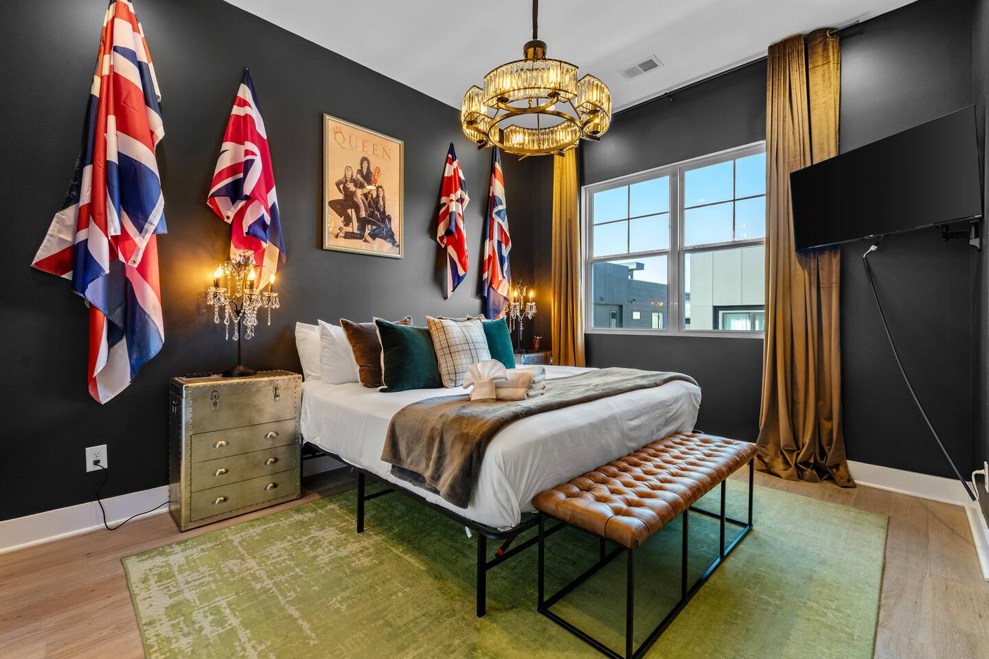 ✨ Run It Up! – Your Royal Nashville Retreat ✨ Welcome to Run It Up!, a bold, English-inspired getaway where London flair meets Nashville energy. With a private rooftop, skyline views, and a game-filled garage lounge, this 4BR/4BA retreat (9 beds total!) is made for groups ready to unwind, laugh, and live it up in style. 🏓 The Garage Game Room – Where Fun Reigns Supreme Challenge your mates to a ping pong match, spin some tunes, and kick back with a pint in your very own lounge-style garage. From pre-game excitement to laid-back hangouts, this space was built for good times and great company. 🌆 Rooftop Royalty – Cheers to the Skyline Take in sweeping views of downtown Nashville from your private rooftop perch. Sip cocktails, snap skyline selfies, and toast to another winning night—because at Run It Up!, the city lights are always your backdrop. 🛏 Room for Every Lad & Lady With 4 bedrooms, 4 bathrooms, and 9 comfy beds, everyone gets their own slice of comfort. Each room carries a hint of English charm—think classic touches, cozy textures, and a refined yet playful vibe. 🍳 Fully Stocked Kitchen & Coffee Corner Whip up a hearty breakfast before the day’s adventures or enjoy your morning tea (or coffee!) while planning your next outing. Everything you need for home-style meals and relaxed mornings is right here. 📺 Kick Back in Style Gather the crew, catch your favorite show, or relive the night’s highlights over a movie marathon in the inviting living space. 🚗 Parking Made Easy – No circling the block—your group has plenty of in complex parking. From skyline sunsets to game-night energy, Run It Up! delivers a one-of-a-kind stay where English class meets Nashville sass.