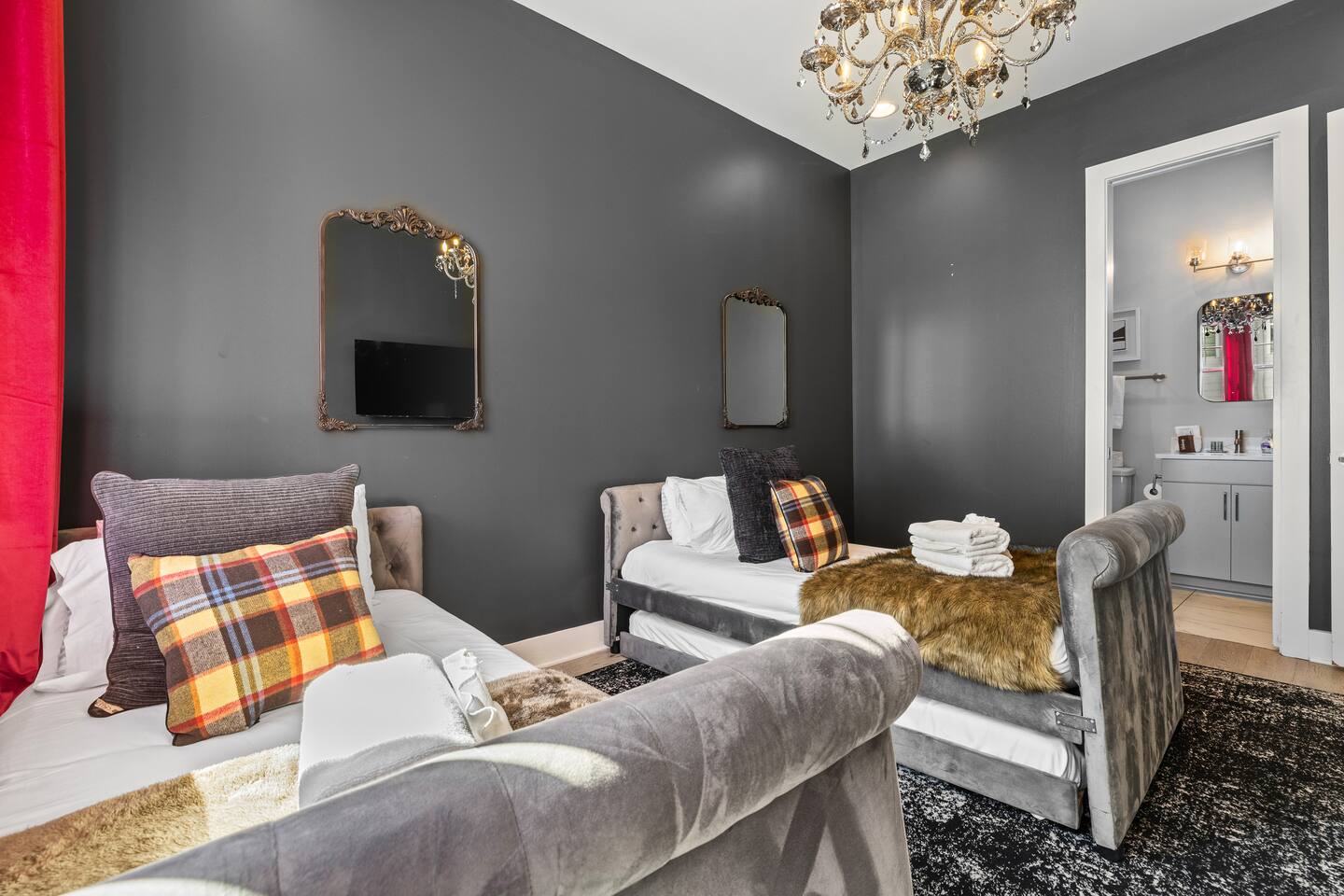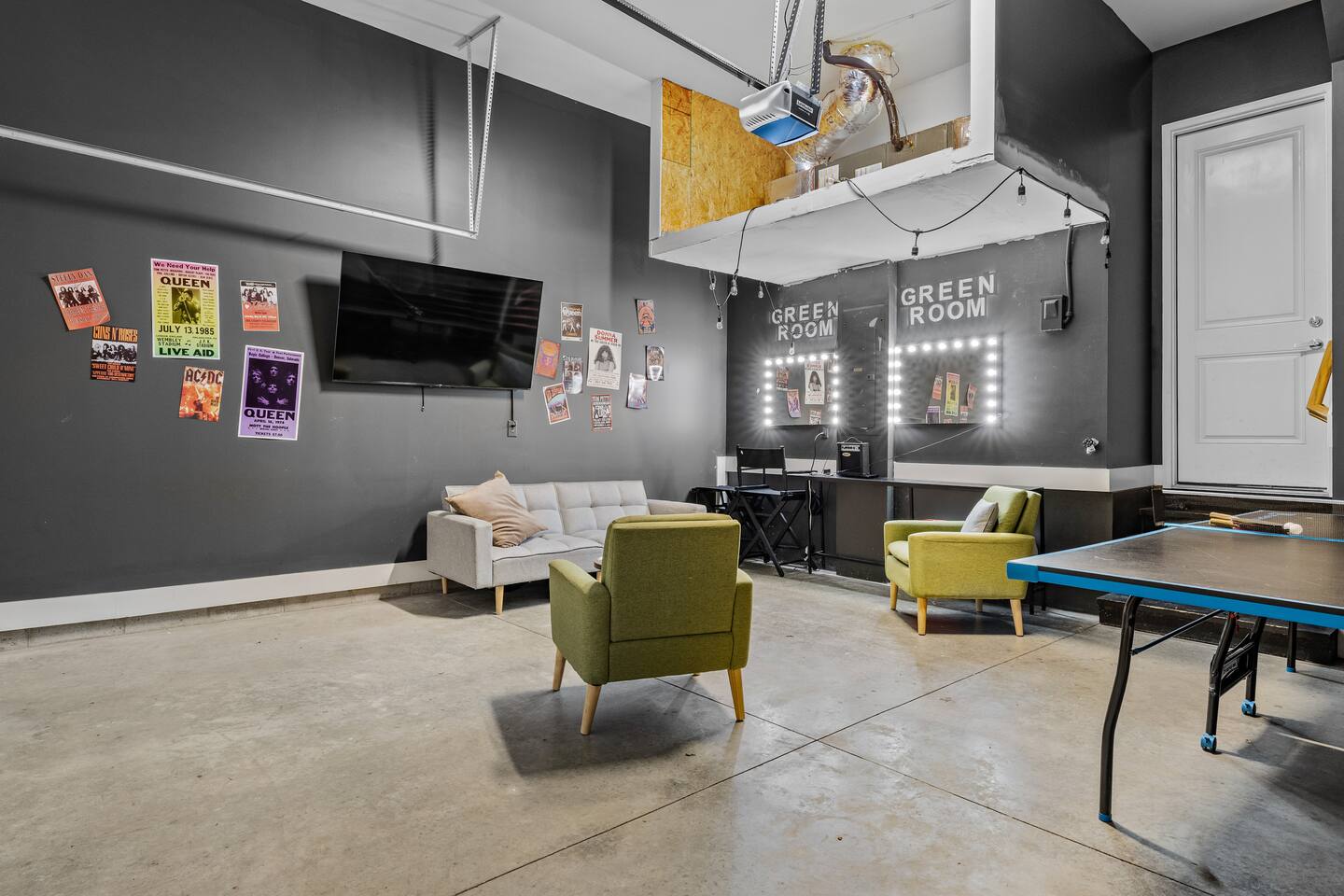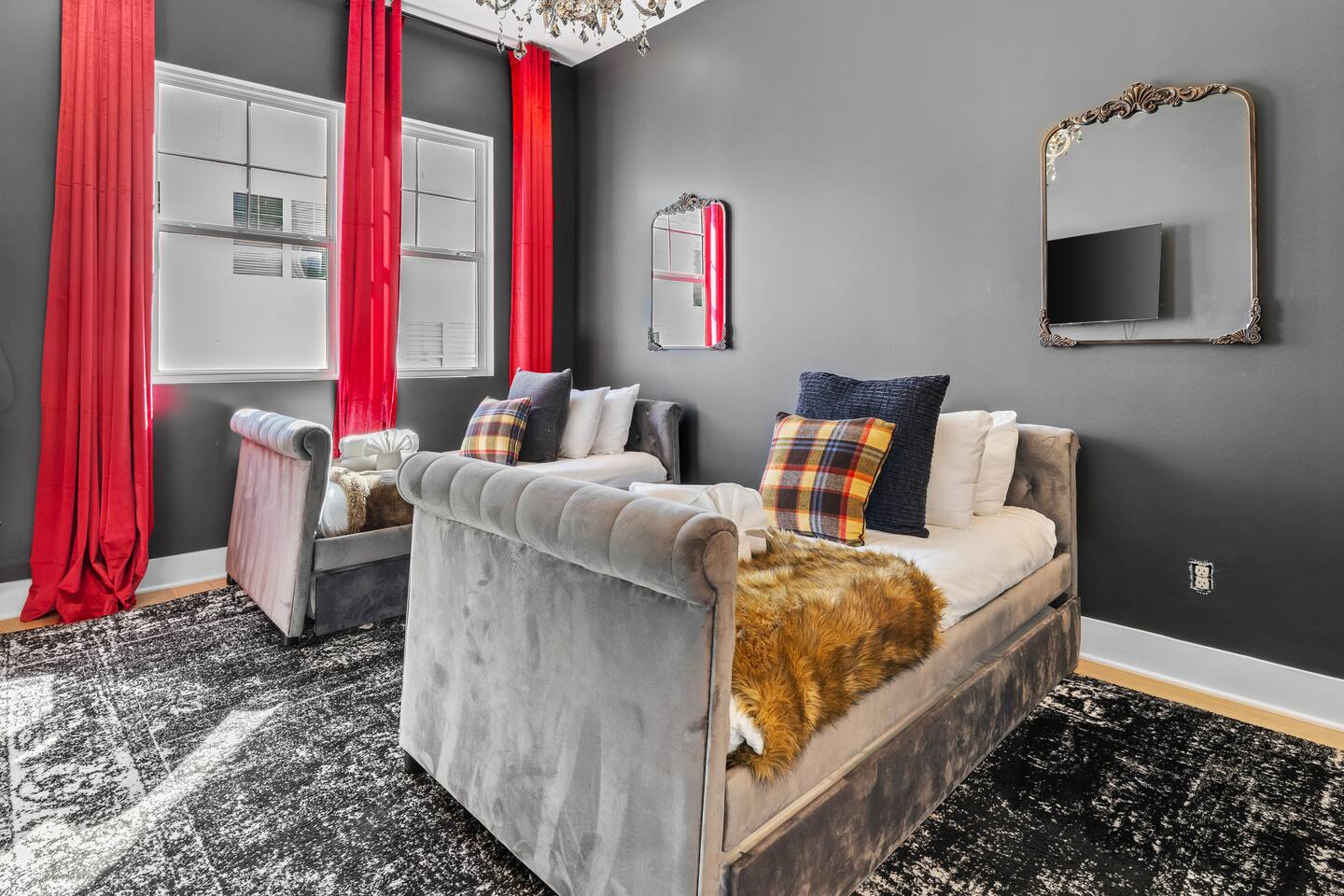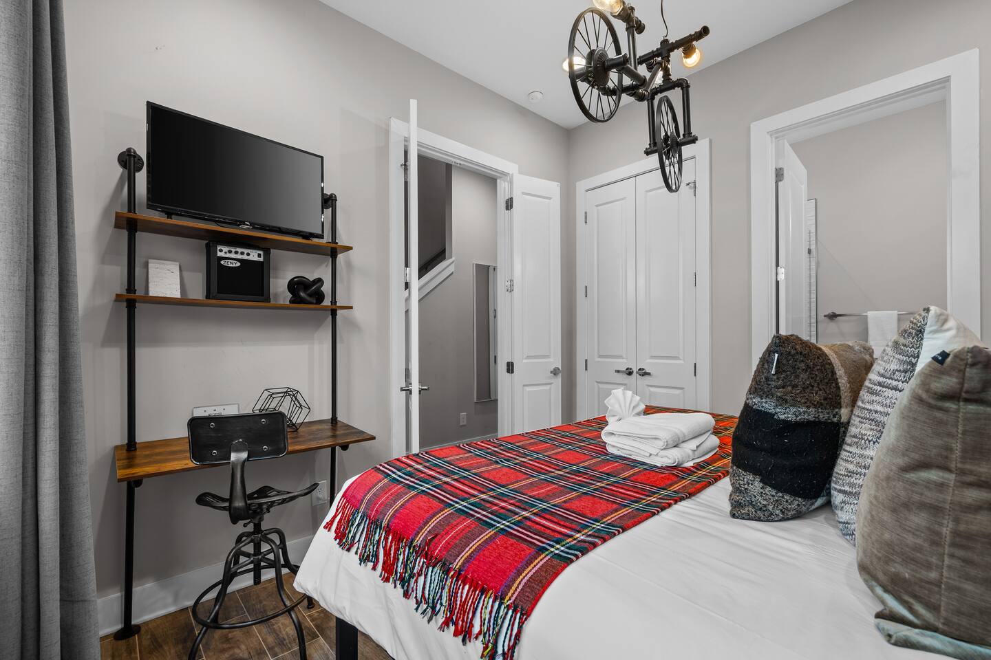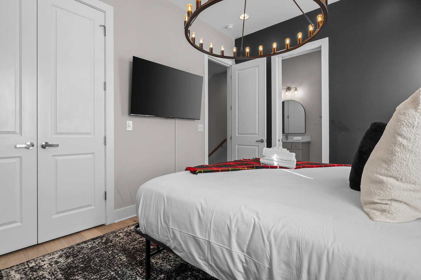 ✨ Run It Up! – Your Royal Nashville Retreat ✨ Welcome to Run It Up!, a bold, English-inspired getaway where London flair meets Nashville energy. With a private rooftop, skyline views, and a game-filled garage lounge, this 4BR/4BA retreat (9 beds total!) is made for groups ready to unwind, laugh, and live it up in style. 🏓 The Garage Game Room – Where Fun Reigns Supreme Challenge your mates to a ping pong match, spin some tunes, and kick back with a pint in your very own lounge-style garage. From pre-game excitement to laid-back hangouts, this space was built for good times and great company. 🌆 Rooftop Royalty – Cheers to the Skyline Take in sweeping views of downtown Nashville from your private rooftop perch. Sip cocktails, snap skyline selfies, and toast to another winning night—because at Run It Up!, the city lights are always your backdrop. 🛏 Room for Every Lad & Lady With 4 bedrooms, 4 bathrooms, and 9 comfy beds, everyone gets their own slice of comfort. Each room carries a hint of English charm—think classic touches, cozy textures, and a refined yet playful vibe. 🍳 Fully Stocked Kitchen & Coffee Corner Whip up a hearty breakfast before the day’s adventures or enjoy your morning tea (or coffee!) while planning your next outing. Everything you need for home-style meals and relaxed mornings is right here. 📺 Kick Back in Style Gather the crew, catch your favorite show, or relive the night’s highlights over a movie marathon in the inviting living space. 🚗 Parking Made Easy – No circling the block—your group has plenty of in complex parking. From skyline sunsets to game-night energy, Run It Up! delivers a one-of-a-kind stay where English class meets Nashville sass.