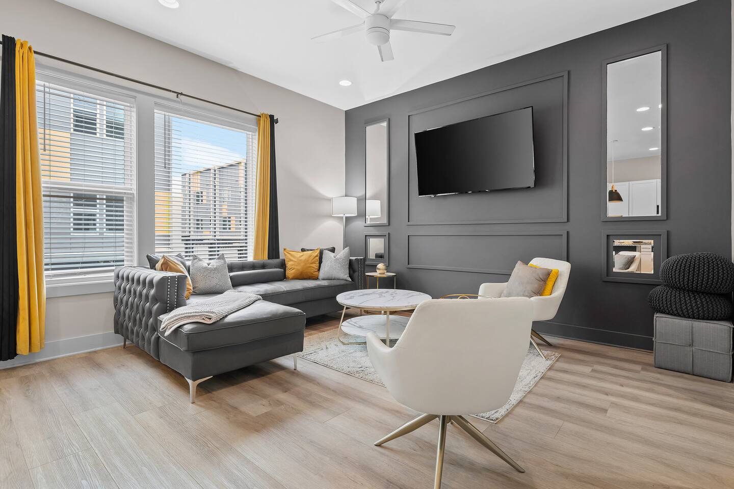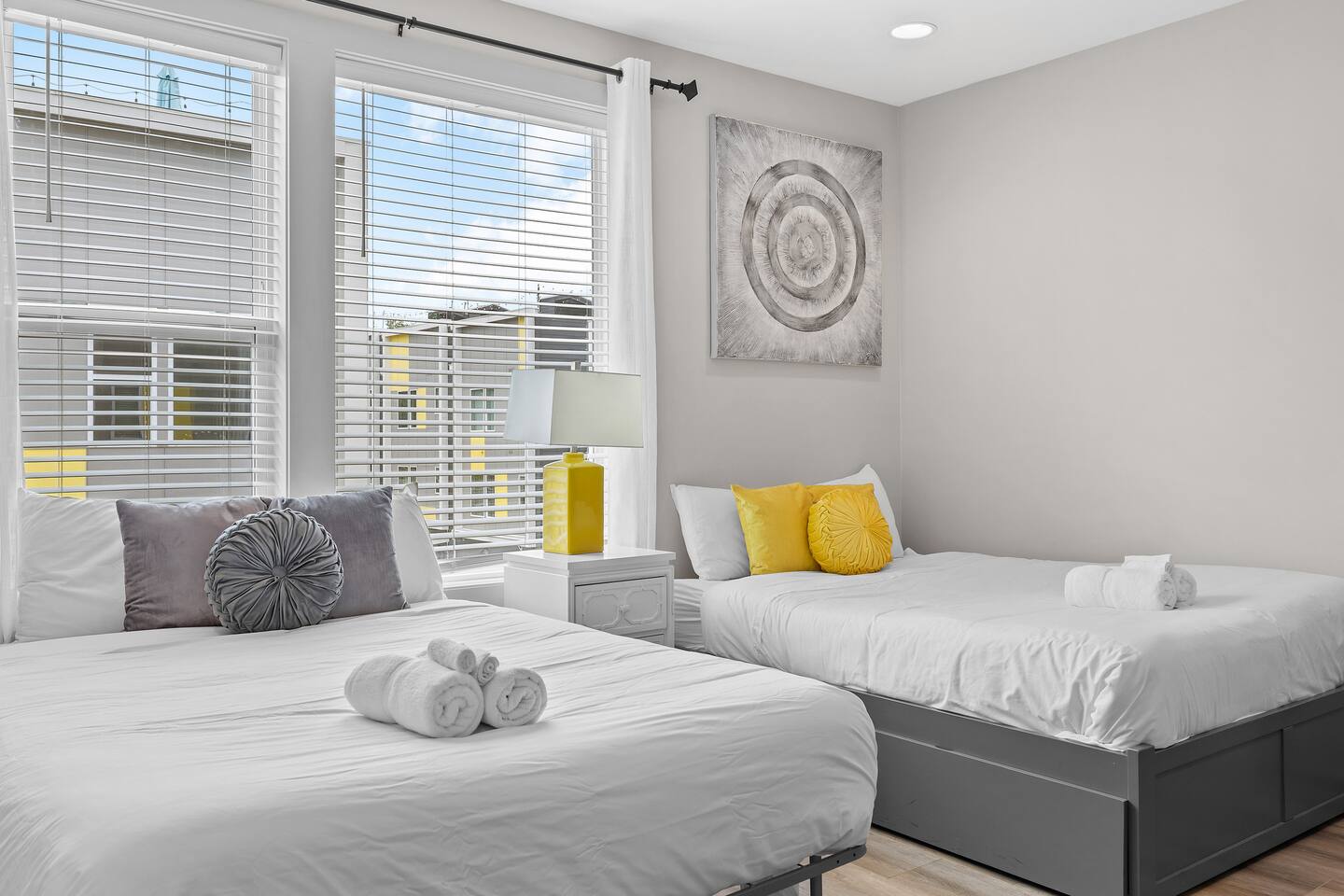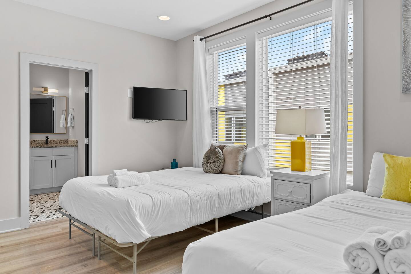Welcome to Southern Belle & Showtime At Midnight – Where Nashville’s Rhythm Meets Comfort! Step into a space bursting with music-inspired décor and jaw-dropping rooftop views—the ultimate spot for unforgettable memories! 🌅 Spacious Outdoor Lounge – Head to the rooftops for sunset BBQs, lounging under twinkling lights, and cozy late-night chats that last long after your trip ends. 🍽 Fully Stocked Kitchen & Coffee Station – Whether you're cooking a feast or grabbing a quick snack, our kitchen has you covered. First unit: 🛏 4 Bedrooms | 4 Bathrooms | 11 Beds – Rest easy in plush beds or chill on the cozy couch. With an in-unit washer/dryer, packing light is a breeze. Second unit: 🛏 Room for Everyone – With 4 bedrooms, 4 bathrooms, and 8 beds. This home sleeps up to 20 guests comfortably. From chic design touches to plush bedding, every room is its own little retreat after a day of exploring or a night on Broadway. Please reach out if you have more than 20 guests! 📺 Big Screen TV & HD Cable – Kick back, binge-watch your favorites, and let the sounds of Nashville become your soundtrack. 🚗 Parking Made Easy – No circling the block—your group has plenty of in complex parking.