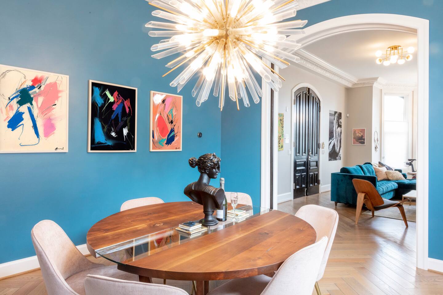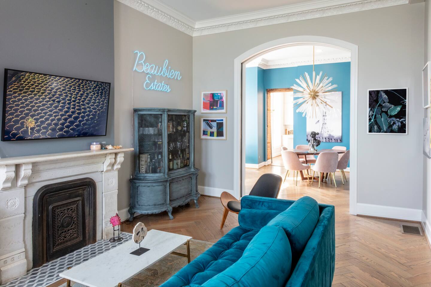 Welcome to Brush Park, Detroit—where historic charm meets modern luxury for an unforgettable stay! ✨ 🌟 Open Concept Luxury Living Area Step into a world of comfort and style with our beautifully designed living room, showcasing the work of talented local Detroit artists 🎨. From the quirky animal bust 🦁 to the French-style liquor cabinet 🍷, every corner of the space tells a story. Sink into our mid-century teal sofa or side chair and kick back with a 50-inch Frame TV, perfect for movie nights or hanging with friends! 🍿 🍽️ Fully Stocked Kitchen & Coffee Bar While dining out in Detroit is always a treat, sometimes nothing beats a home-cooked meal! Our kitchen, with its pendant lights, cabinetry, and exposed brick wall, is a culinary dream. The coffee bar ☕, wine fridge 🍷, and plenty of storage space will make preparing meals a breeze. And don’t forget to ask us about our favorite local restaurants—you’ll want to try them all! 😋 🍴 Elegant Dining Area Step through the historic pocket doors and into the dining room, where you’ll be wowed by the ornate crown molding and herringbone flooring. Dine under a stunning chandelier 💫 at the elegant round table (seating up to eight) or enjoy a quiet breakfast at the cozy table by the bay window. Either way, it’s a meal with a view! 🥂 💪 Peloton Bike Stay active while you stay with our Peloton indoor bike 🚴♂️ and top-notch fitness equipment. Keep up with your workout routine in our dedicated fitness space, because you deserve to feel great on your getaway! 💥 🛏️ 3 Bedrooms, 3 Bathrooms, 4 Beds - Office Swing Bedroom: Need to get work done? No problem! This flexible space doubles as both an office and a bedroom 🖥️. With an ensuite bathroom featuring a soaking tub 🛁 and stand-up shower 🚿, you’ll feel refreshed while catching up on tasks. Plus, a fully equipped workstation with Wi-Fi and a printer is available! 🖨️ - Additional Bedrooms: After a busy day, retreat to one of our two gorgeous bedrooms with bay windows. Whether you're in the king-sized bed 👑 or queen-sized bed 👸, you’ll wake up feeling rested and ready for another adventure. 🧺 Washer/Dryer Convenience Staying a little longer? Keep your wardrobe fresh with our in-unit washer and dryer. The lower level features a stackable washer/dryer combo, plus a luxurious washroom with a rain shower head 🌧️ and double sink vanity—because you deserve the best! 💦 With a perfect blend of historic elegance and modern amenities, this is your gateway to an unforgettable stay in vibrant Detroit. Whether it’s a quick getaway or an extended stay, this home has everything you need for a truly memorable experience. Can’t wait to host you! 🏡✨