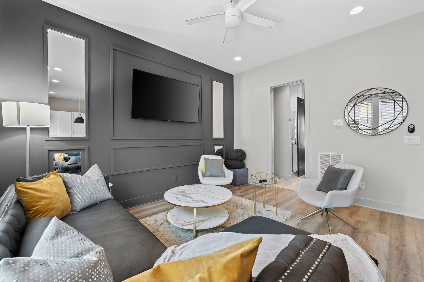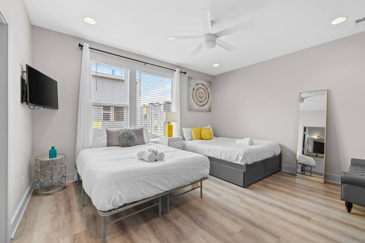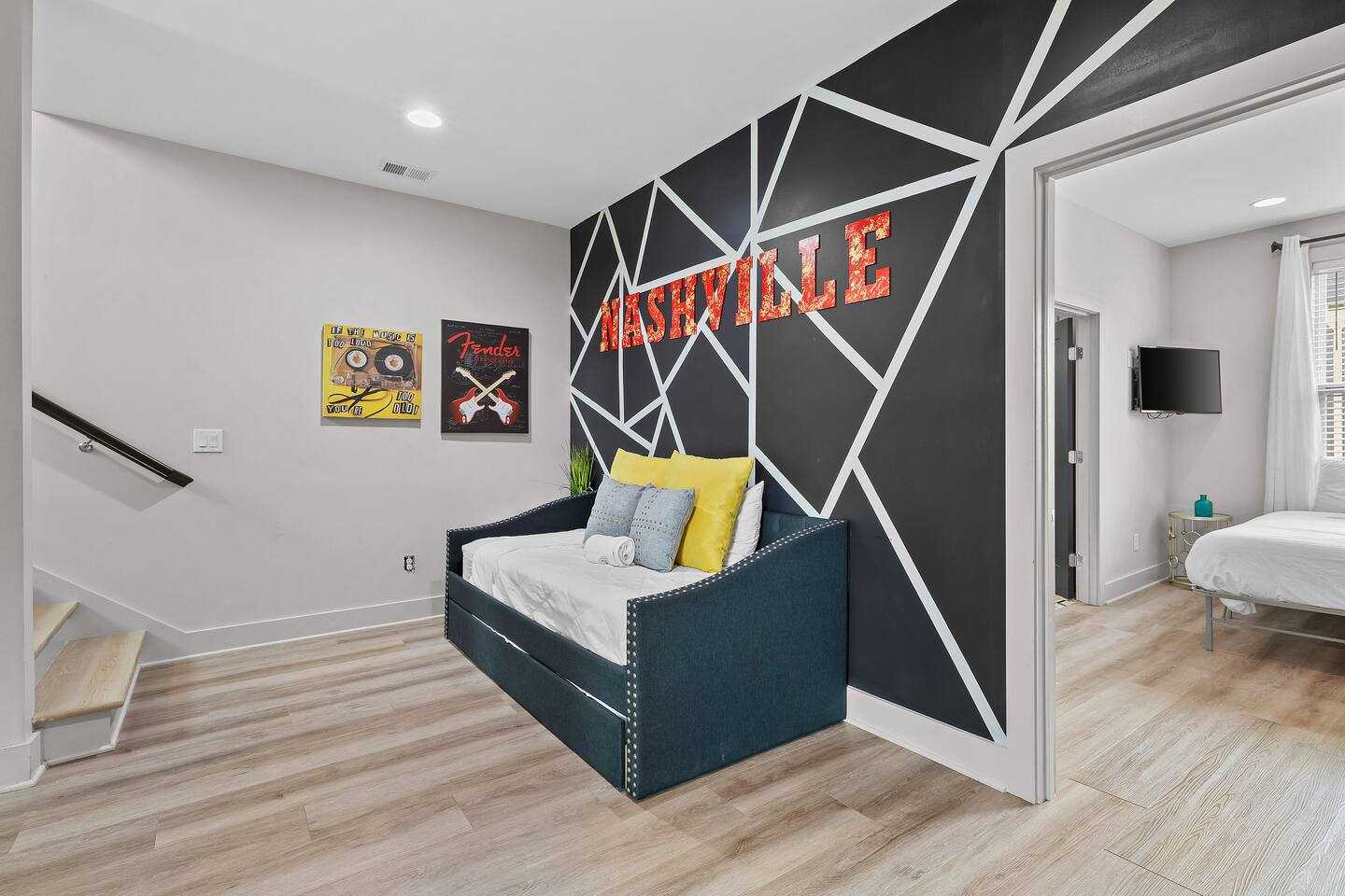 Welcome to Daisy’s Southern Belle – Where Nashville’s Rhythm Meets Comfort! Step into a space bursting with music-inspired décor and jaw-dropping rooftop views—the ultimate spot for unforgettable memories! 🌅 Spacious Outdoor Lounge – Head to the rooftop for sunset BBQs, lounging under twinkling lights, and cozy late-night chats that last long after your trip ends. 🍽 Fully Stocked Kitchen & Coffee Station – Whether you're cooking a feast or grabbing a quick snack, our kitchen has you covered. 🛏 4 Bedrooms | 4 Bathrooms | 11 Beds – Rest easy in plush beds or chill on the cozy couch. With an in-unit washer/dryer, packing light is a breeze. 📺 Big Screen TV & HD Cable – Kick back, binge-watch your favorites, and let the sounds of Nashville become your soundtrack. Daisy’s Southern Belle is your perfect home-away-from-home! Book now and dive into your Nashville adventure!